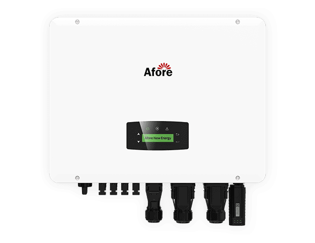 Afore AF10K-TH je trofazni hibridni inverter snage 10 kW namijenjen kućnim i komercijalnim sustavima s visokonaponskim (HV) baterijama. Podržava PV oversizing do 150 %, ima dva MPPT trackera, maksimalnu struju stringa 40 A te omogućuje 100 % nebalansirani trofazni izlaz. Ugrađena UPS funkcija (<10 ms) osigurava napajanje kritičnih potrošača u slučaju nestanka mreže. Podržava rad s generatorom, anti-feed-in funkciju i daljinski nadzor.